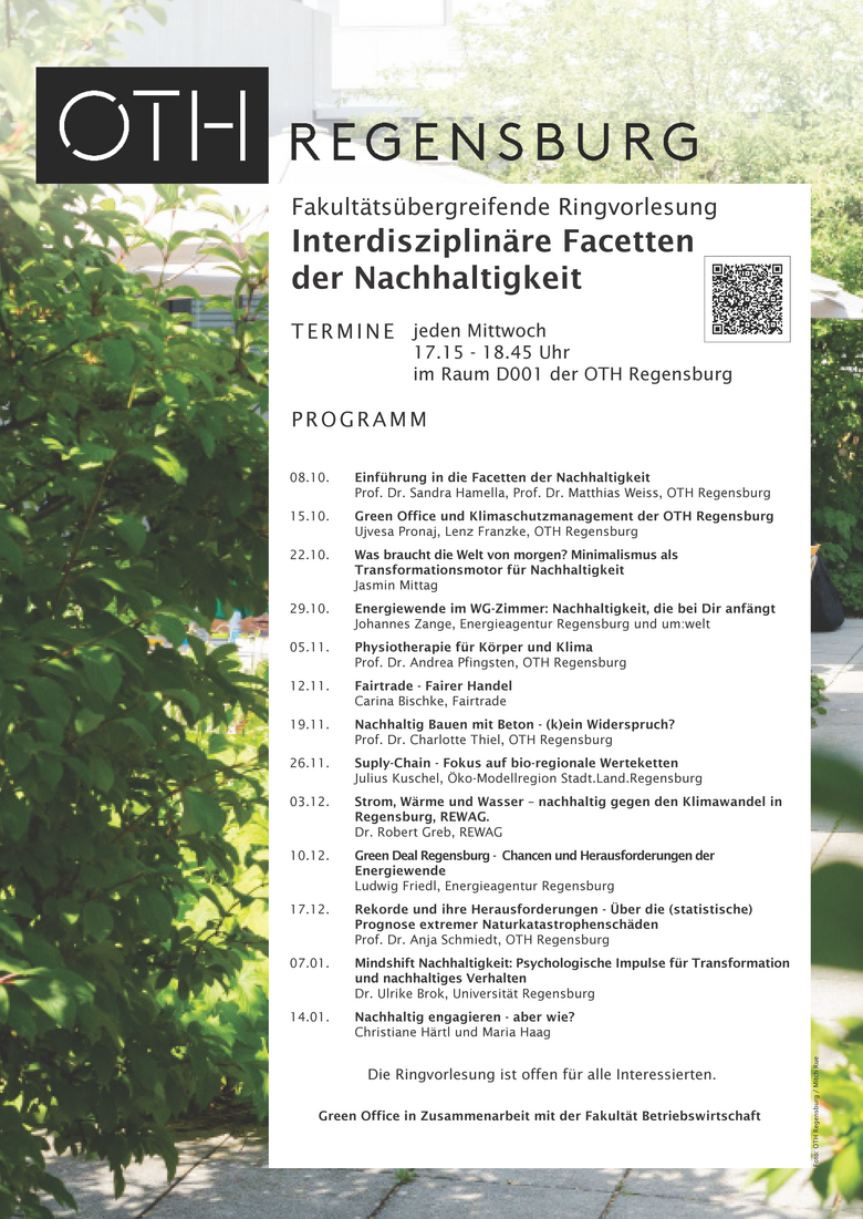 Diese Vorlesung zeigt praxisnah, wie sich mit kleinen Entscheidungen im Wohnheim, in der WG oder an der Uni und OTH große Wirkung erzielen lässt. Wir gehen gängigen Mythen der Energiewende auf den Grund und klären, was wirklich zählt.