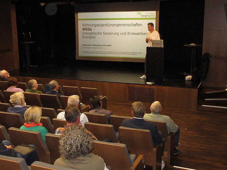 Im Mittelpunkt stand die Frage, wie Eigentümergemeinschaften gemeinsam den Schritt hin zu mehr Energieeffizienz schaffen können – denn: energetische Sanierungen sind Teamarbeit. Ein Experte der Energieagentur zeigte, wie sich Modernisierungen sinnvoll planen lassen, welche Heizsysteme auf Basis erneuerbarer Energien in Frage kommen und wie Fördermittel dabei helfen, Kosten zu senken.