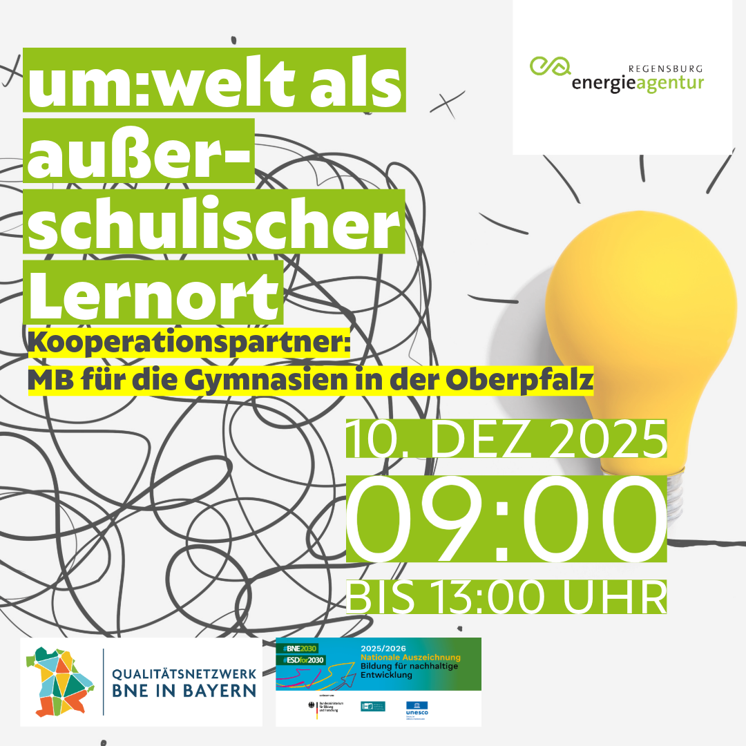 Die Energieagentur Regensburg ist mit dem Energie-Bildungszentrum um:welt staatlich anerkannte Umweltstation und Partnerin im "Qualitätsnetzwerk BNE in Bayern"