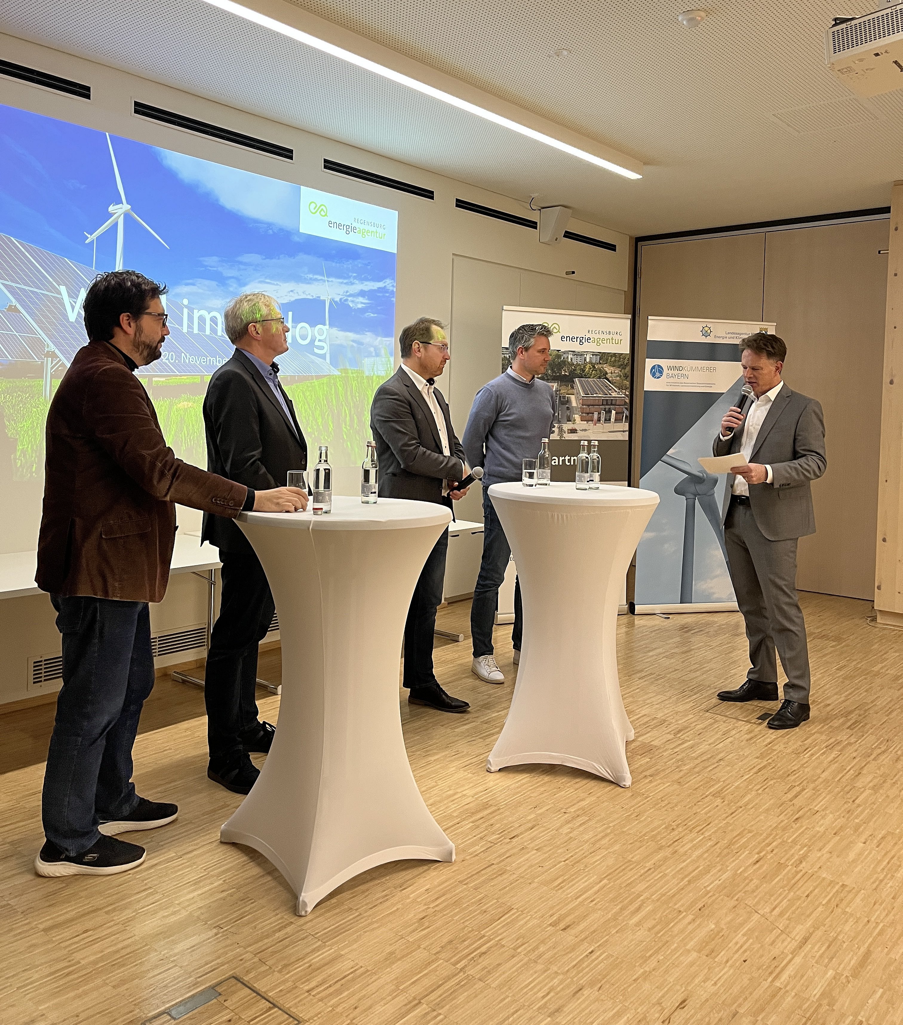 Nach der Begrüßung durch Ludwig Friedl, Geschäftsführer der Energieagentur Regensburg, gab Sebastian Zirngibl einen kompakten Faktencheck zur Energiewende mit besonderem Fokus auf die Windkraft. Er ging dabei auf aktuelle Entwicklungen, technische Grundlagen und häufige Missverständnisse ein.